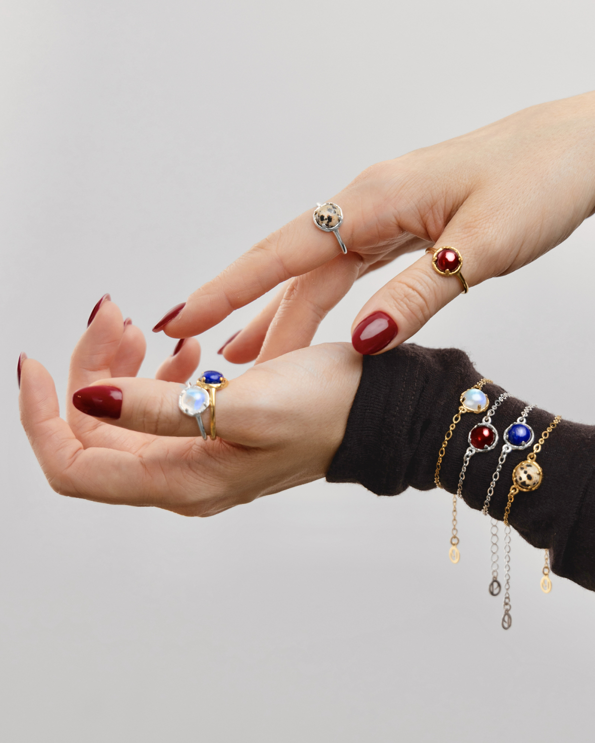 Kamień to centralna cześć biżuterii przykuwająca uwagę. Dlatego zadbaliśmy, by każdy z nich był wyjątkowy. Każdy z 13 kamieni szlachetnych posiada przepiękną barwę, wzór lub efekt odbicia światła stworzony przez samą naturę. Dzięki temu biżuteria jest nieoczywista i zaskakująca. Wygląda magicznie, a jednocześnie elegancko i zjawiskowo. Piękny błysk kamienia w bransoletce sprawi, że wielokrotnie z zachwytem będziesz obserwowała jego grę barw lub światła.