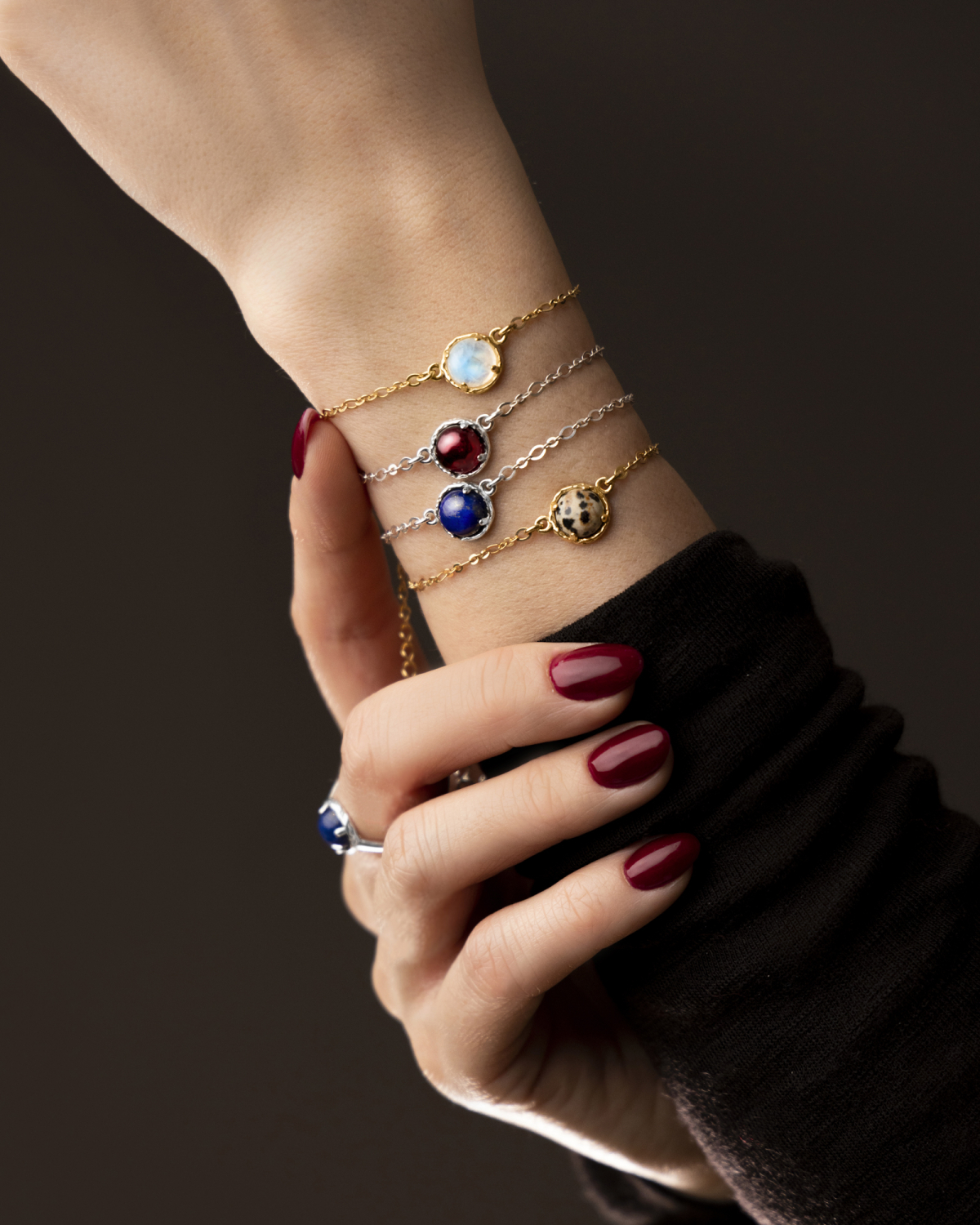 Kamień to centralna cześć biżuterii przykuwająca uwagę. Dlatego zadbaliśmy, by każdy z nich był wyjątkowy. Każdy z 13 kamieni szlachetnych posiada przepiękną barwę, wzór lub efekt odbicia światła stworzony przez samą naturę. Dzięki temu biżuteria jest nieoczywista i zaskakująca. Wygląda magicznie, a jednocześnie elegancko i zjawiskowo. Piękny błysk kamienia w bransoletce sprawi, że wielokrotnie z zachwytem będziesz obserwowała jego grę barw lub światła.