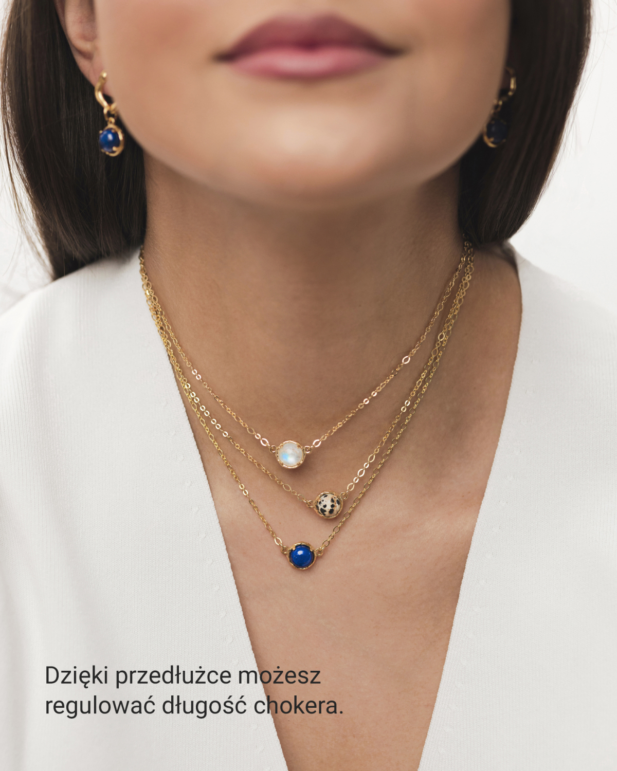 Kamień to centralna cześć biżuterii przykuwająca uwagę. Dlatego zadbaliśmy, by każdy z nich był wyjątkowy. Każdy z 13 kamieni szlachetnych posiada przepiękną barwę, wzór lub efekt odbicia światła stworzony przez samą naturę. Dzięki temu biżuteria jest nieoczywista i zaskakująca. Wygląda magicznie, a jednocześnie elegancko i zjawiskowo. Piękny błysk kamienia w naszyjniku sprawi, że wielokrotnie z zachwytem będziesz obserwowała jego grę barw lub światła.