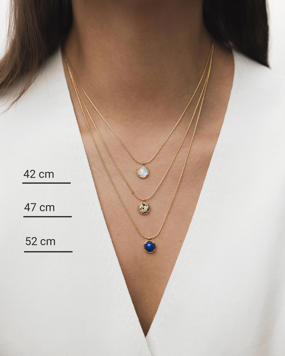Kamień to centralna cześć biżuterii przykuwająca uwagę. Dlatego zadbaliśmy, by każdy z nich był wyjątkowy. Każdy z 13 kamieni szlachetnych posiada przepiękną barwę, wzór lub efekt odbicia światła stworzony przez samą naturę. Dzięki temu biżuteria jest nieoczywista i zaskakująca. Wygląda magicznie, a jednocześnie elegancko i zjawiskowo. Piękny błysk kamienia w naszyjniku sprawi, że wielokrotnie z zachwytem będziesz obserwowała jego grę barw lub światła.