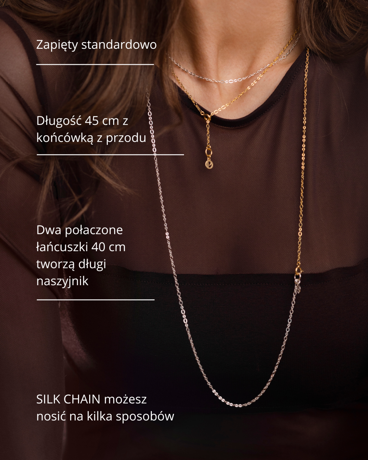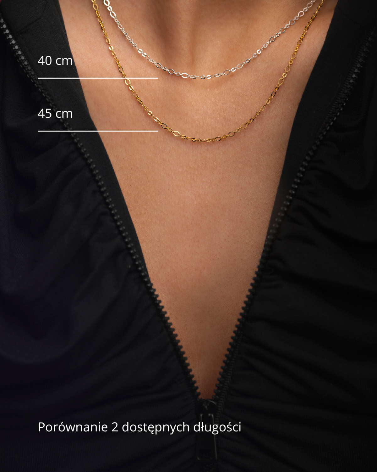 - Długość naszyjnika jest mierzona razem z zapięciem po ułożeniu na płasko w jednej linii i naprężeniu.