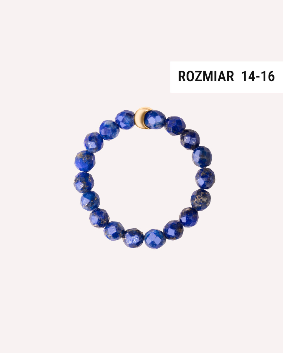 Pierścionek wykonany jest z naturalnych kamieni lapis lazuli o głębokiej, niebieskiej barwie, których fasety pięknie odbijają światło i nadają niezwykłego blasku. Kamienie w pierścionku są nawleczone na silikonową gumkę, dzięki czemu pierścionek idealnie dopasuje się do Twojego palca.